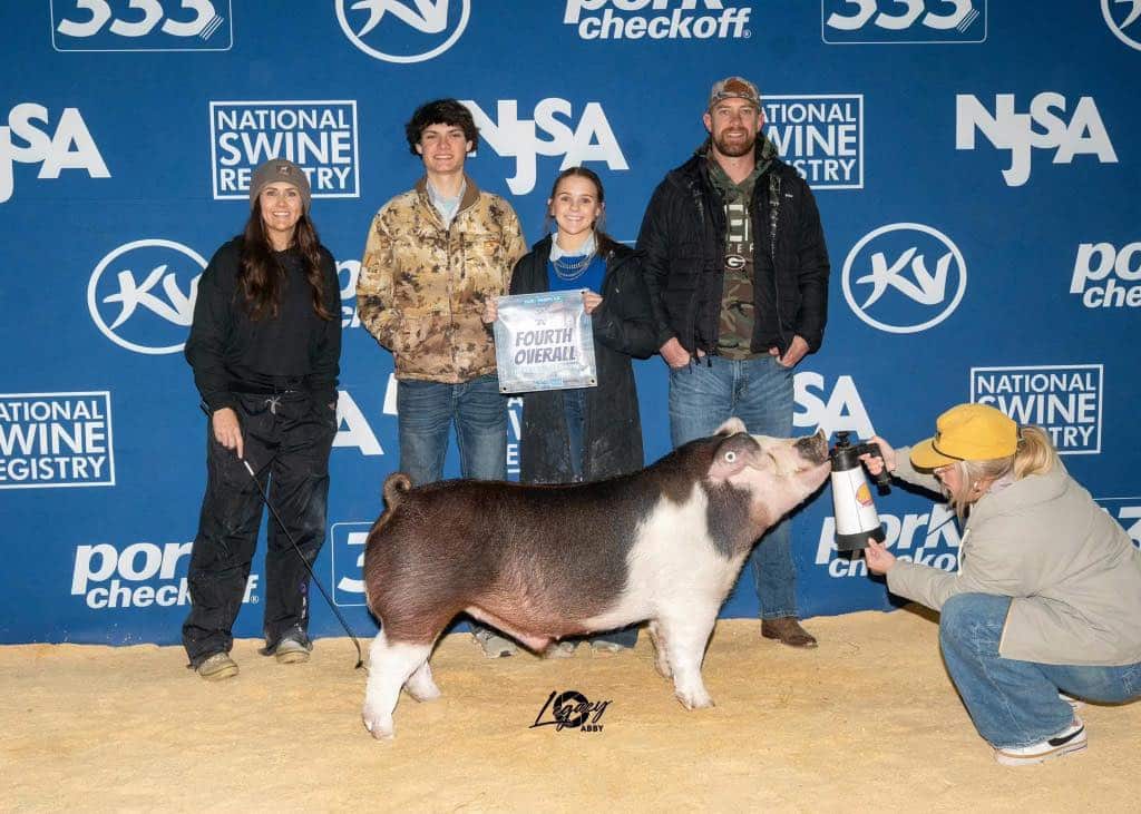 Jungle Cat is one of the most exciting Hereford boars we have seen in 2024. He was named the Grand Champion Hereford Boar at the 2024 CPS STC. The maternal line sitting behind him that is elite. His mother was the 3rd Overall Hereford Gilt at the 2022 OYE and has raised the Reserve Champion Hereford Barrow at the 2023 Indiana State Fair and the 3rd Overall AOB Barrow at the 2024 Georgia National. His grandmother, the 19-6 Stronghold sow, is responsible for the all of the Hereford success at Corya’s. She is a littermate to the Champion Hereford Gilt at both the Exposition and Indiana State Fair along with the Reserve Champion Hereford Gilt at the Team Purebred Junior Nationals in 2019. She has raised many influential boars and show stock in her career with her offspring being big generators too. His great grandmother is the Never Say Never foundation sow that started it all for Corya and she is the mother of Transformer. Jungle Cat is impressive. He is cool fronted, square made, big topped, big centered, and stout hipped. We think that Jungle Cat is one with an exciting future!